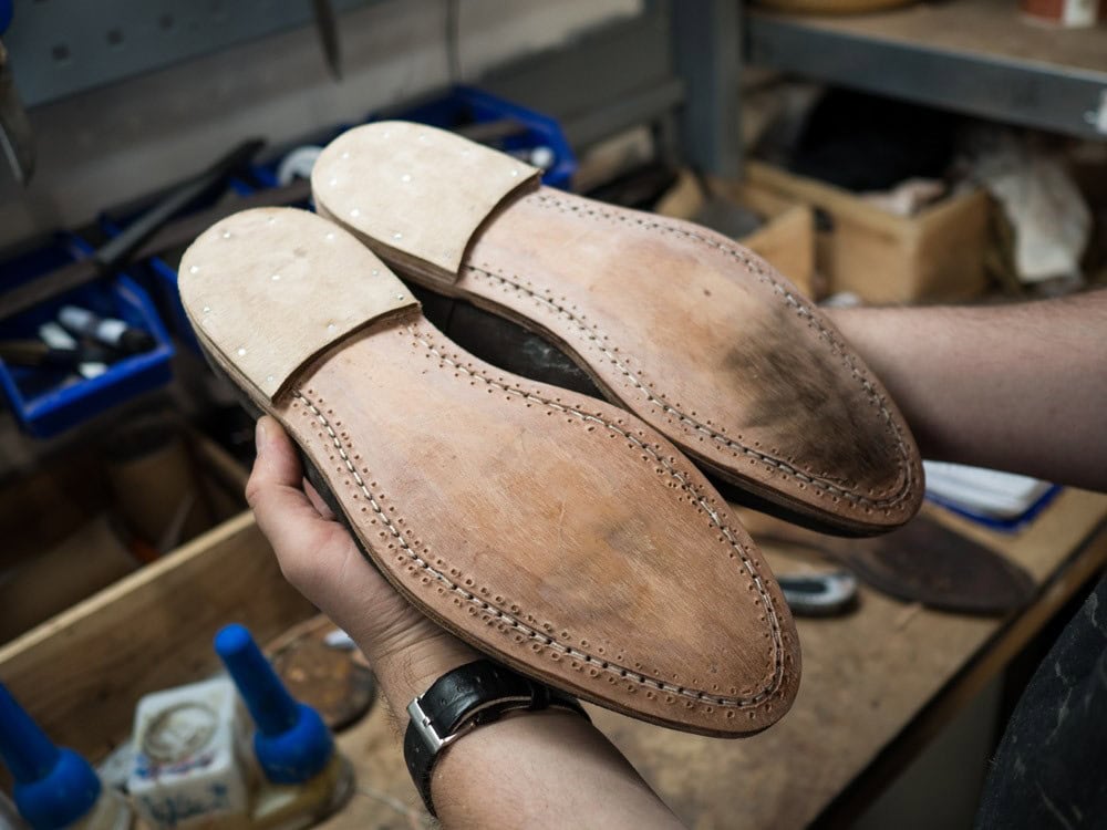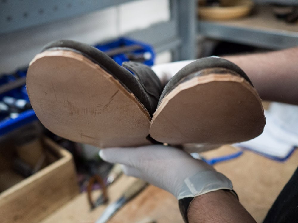Na szczęście Wielki Shoe ma na to odpowiedź – jeżeli chcesz mieć świadomość, że Twoje podeszwy są dobrze zabezpieczone to oprócz produktów ochronnych (Saphir Sole Guard) oferujemy usługę zelowania. Zdarzają się bardzo rzadkie przypadki, iż szew mając kontakt ze stopą ma tendencję do tworzenia pewnego „uczucia dyskomfortu” , jeżeli czujesz, że to Twój przypadek – mamy remedium. Jest nim wkładka ze skóry bydlęcej. Idealnie dopasowana zaradzi sytuacji w mgnieniu oka. Niezależnie jaką metodą Twoje buty zostały zszyte, nie martw się o ich używalność – Wielki Shoe zadba o to by służyły jak najdłużej! Poniżej krótka historia o tym jak to się robi w Wielkim Shoe: Buty definitywnie wymagają naszej ingerencji i nie tylko podeszwą trzeba się zająć.