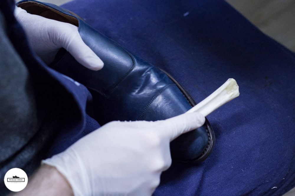 Kość z jelenia to tajna broń każdego posiadacza butów z cordovanu. Możemy zdradzić, że oprócz niej użyliśmy specjalnego kremu stworzonego do pielęgnacji tej unikalnej skóry.