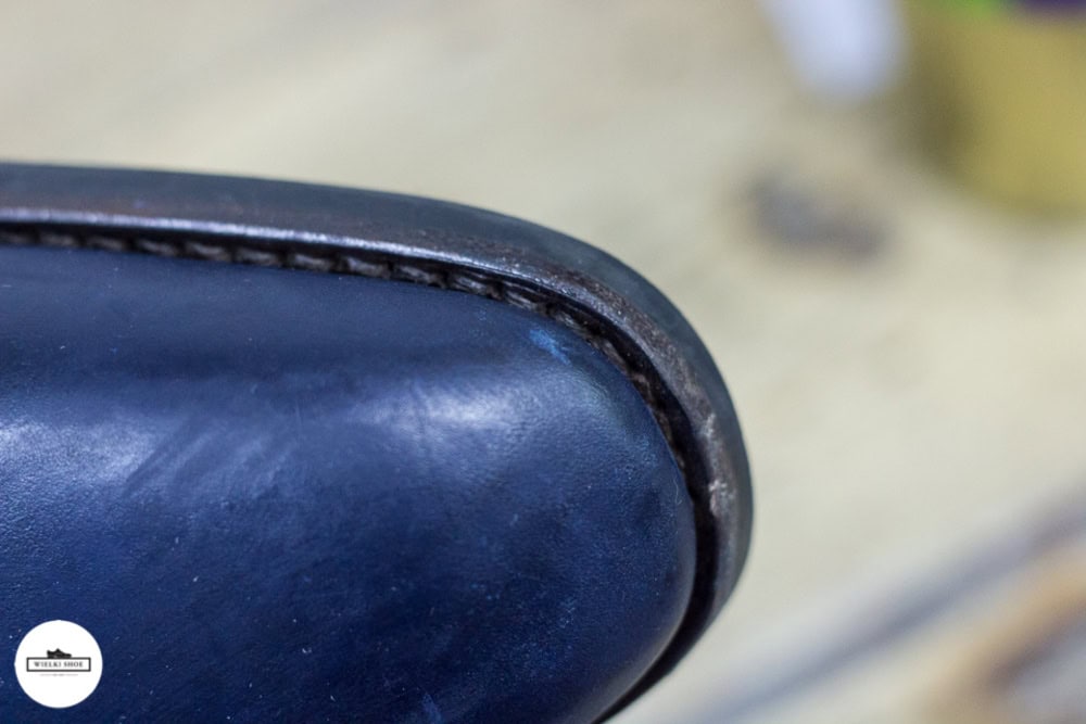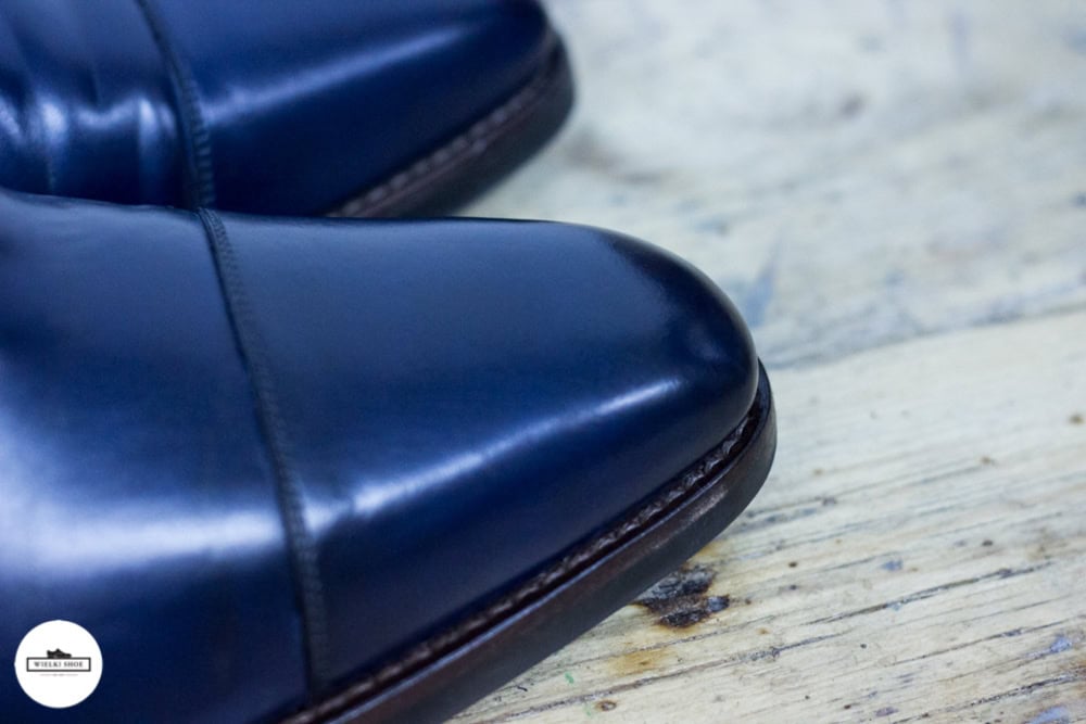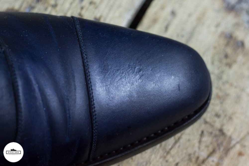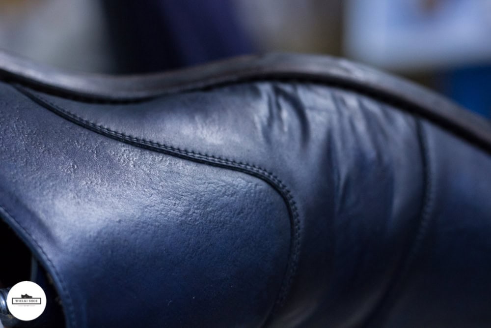 Jakiś czas temu trafiły do nas buty wykonane z cordovanu i wymagające odrobiny uwagi i pielęgnacji. Skóra tych butów w kontakcie z wodą napuchła i na jej gładkiej powierzchni pojawiły się nieregularne wypukłości.