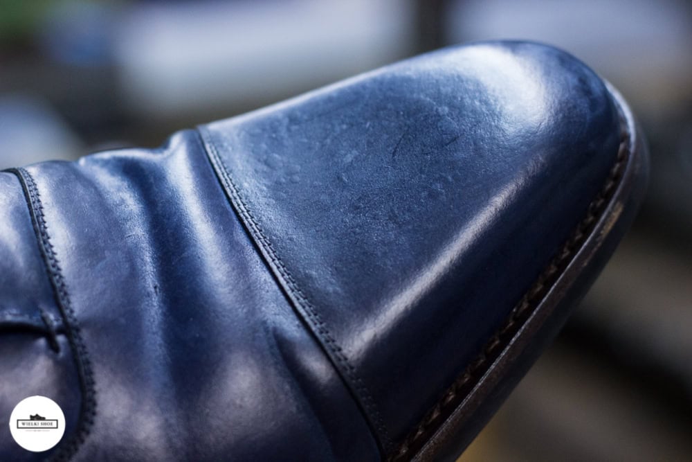 Praktyka niestety pokazuje co innego. Buty te ciężko radzą sobie z naszą jesienną aurą. Chociaż cordovan jest wodoodporny i świetnie nadaje się na luksusowe obuwie jesienno-zimowe, ciężko utrzymać jego doskonały wygląd gdy zaskoczy nas deszcz, w miejscu zamoczenia pojawiają się bowiem nieestetyczne wybrzuszenia.