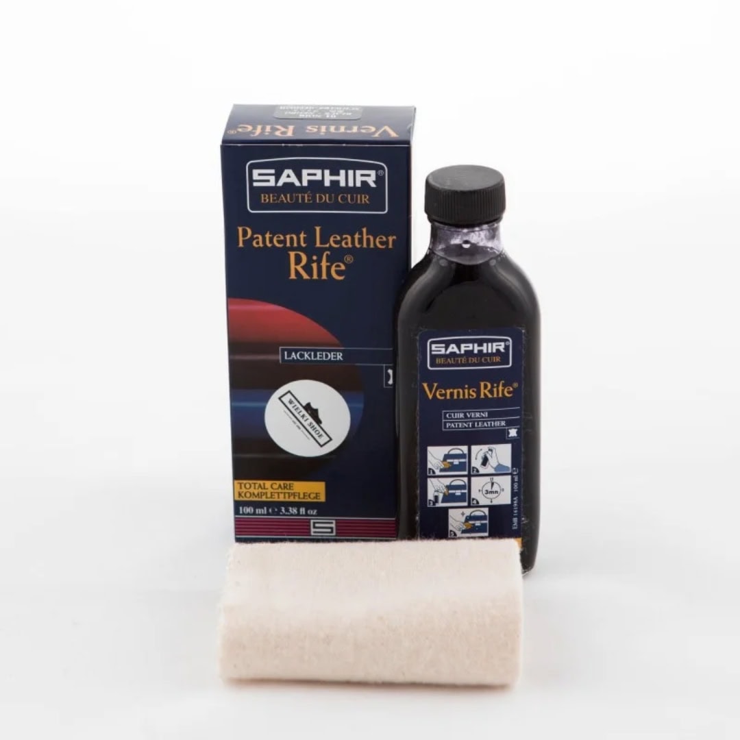 Vernis Rife 100ml - płyn do skór lakierowanych SAPHIR doskonale czyści, usuwa przebarwienia i pokrywa drobne rysy i przetarcia wynikające z codziennego użytkowania. Dodatkowo środek impregnuje powierzchnię skóry i pozwala wydobyć pełen jej urok w postaci naturalnego, odżywionego koloru i pięknego połysku. Stosowanie płynu pozwala przedłużyć żywotność skórzanych przedmiotów i długo cieszyć się ich doskonałym wyglądem.