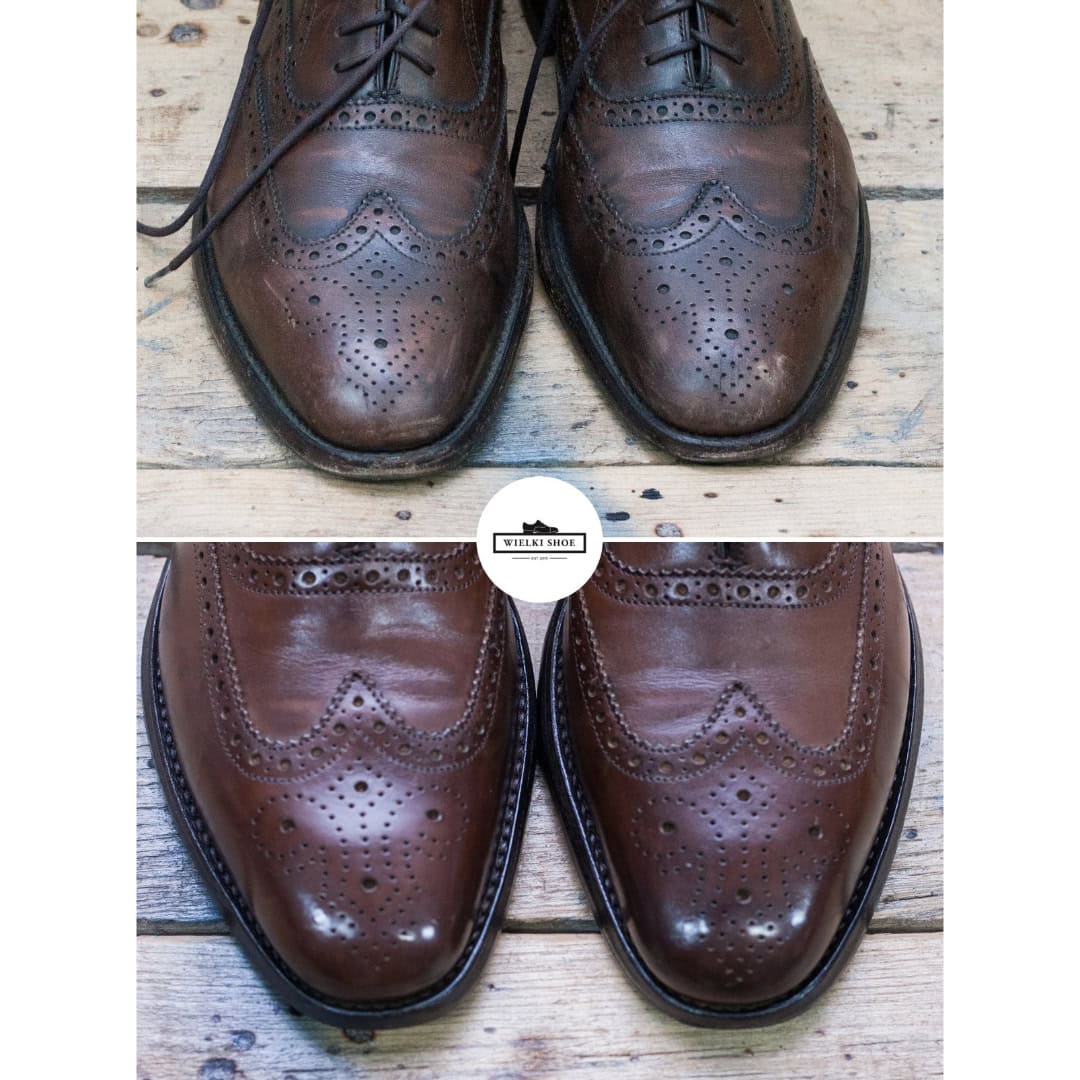 - użycie renowatora koloru by przywrócić butom jednolitą barwę,